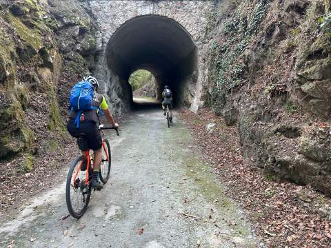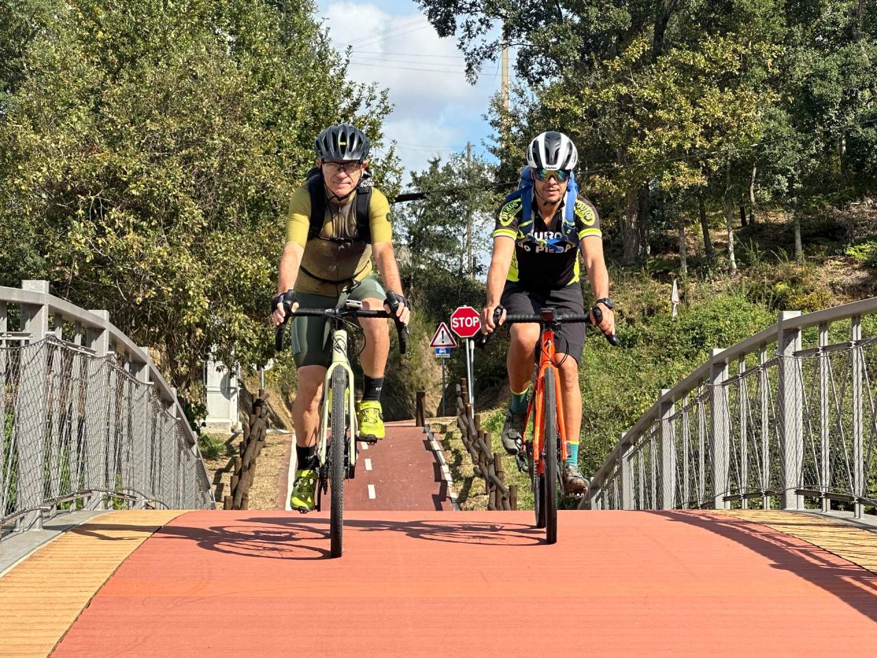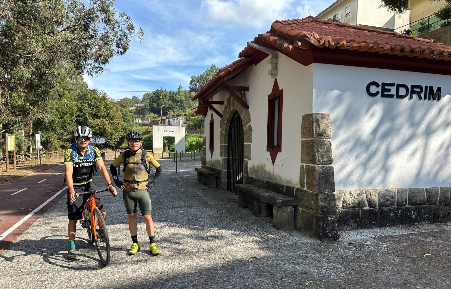 Junto a la antigua estación, queda el centro BTT. Si buscas información para planificar salidas por la zona, ese es un buen recurso. Sin embargo, la ruta más obvia y familiar para pedalear con tranquilidad es la Ecopista do Vouga. La opción oeste te lleva hasta Sernada do Vouga, mientras que la este te acerca a Viseu. Son algo más de 40 kilómetros para la primera opción y unos 50 para la segunda. Hacia Sernada predomina el terreno descendente; hacia Viseu el GPS dijo que salvamos algo más de 400 metros de desnivel acumulado. Os contamos estas dos opciones. Eso sí, nosotros hemos contado con la guía de David y Rita, de la empresa Portugal A2Z Walking & Biking, todo un lujo. Bueno, y no olvidamos tampoco a Teresa y a Dinis. ¡Obrigado!