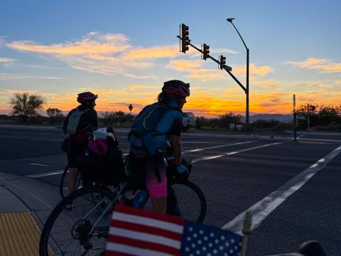 Los primeros kilómetros de la ruta los hicimos en grandes grupos, todas rodando a buen ritmo por un carril bici para salir de la ciudad de Tucson. Pasados ya ese tramo, cada una fue buscando su ritmo y se fueron formando pequeños grupos. Casi siempre eran por nacionalidades. Había quien iba sola, pero casi todas teníamos nuestro grupo de referencia. Celia, Cristina, Merybeth y yo formábamos el autodenominado Spanish Team.