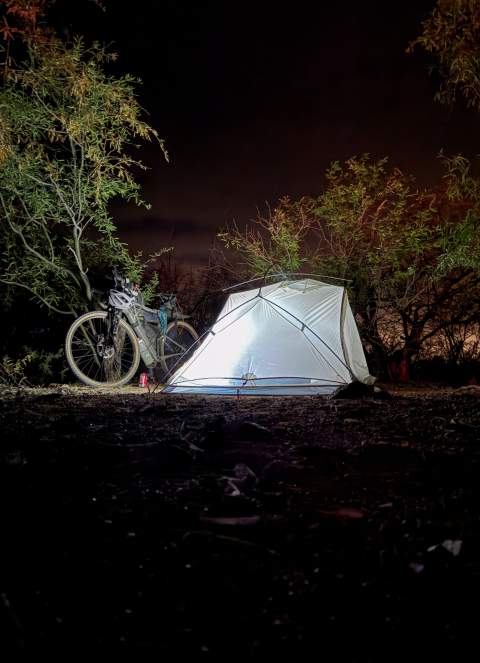 Pasábamos prácticamente todo el día montando en bici. Desde que amanecía hasta que empezaba a caer la noche. Era entonces cuando debíamos darnos prisa e intentar llegar al punto establecido para dormir aprovechando los últimos rallos de sol. Casi siempre dormíamos en unos camp ground o camping habilitados donde la gente puede acampar libremente.