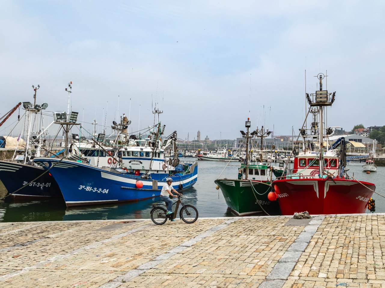 Entramos muy rápido a las calles de Santurtzi. Mejor aflojar un poco, pues el tráfico suele ser denso. Al olor de las sardinas hemos parado en el Hogar del Pescador, delante mismo del pequeño puerto pesquero de la villa, y, como si fuéramos gatos, el olor nos ha abierto el apetito y hemos degustado una docena de ricas sardinas con txakoli, el vino blanco por excelencia de Bizkaia. De aquí al puente colgante de Portugalete no queda nada; no es fácil saber dónde termina un municipio y dónde empieza el otro. Antes de tomar el transbordador del puente colgante hemos entrado a saludar a Andoni Maseda, que regenta la panadería “Alaiaren Ogia” (“El Pan de la alegría”), frente al antiguo mercado, lugar ahora de proyectos autogestionados y conciertos para jóvenes. Andoni es panadero, pero su pasión es la fotografía. Pasad y deleitaos con los pasteles caseros que hace su mujer y con su fluida conversación. Sus fotografías decoran el establecimiento. Una de las últimas tomadas es a Lou Reed en el concierto que ofreció en la villa. El trayecto de Portugalete a Getxo en el transbordador del Puente de Bizkaia es corto, pero muy emotivo. A nadie le deja indiferente, es una construcción de ingeniería civil inaugurada en 1893, el primero de esta tipología en el mundo y uno de los ocho que aún se conservan.