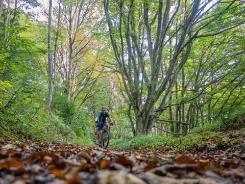 A la salida del trabajo me esperaba Txemi, el fotógrafo de la publicación que estas leyendo. Tres días atrás había recibido un e-mail diciendo que ya estaba la bicicleta Riese & Müller que iba a utilizar para realizar esta ruta en Motor Verde, la tienda de bicicletas eléctricas de referencia en Bilbao. Ana, la responsable de la tienda, me dijo que era la primera Riese & Müller con motor Pinion que llegaba a la tienda y después de algunas explicaciones de cómo funcionaba y comprobar que todo estaba en perfecto orden, salí de allí muy ilusionado; era la primera bici que probaba para la revista Bizikletan / Andar en bici y mi primera ruta. La usé un par de veces antes del día del reportaje y la bici reacciona con potencia si la exiges, es silenciosa y en vez de llevar cadena, lleva una correa de transmisión, aparte de amortiguación bloqueable tanto delante como detrás, una tope de gama en toda regla.
